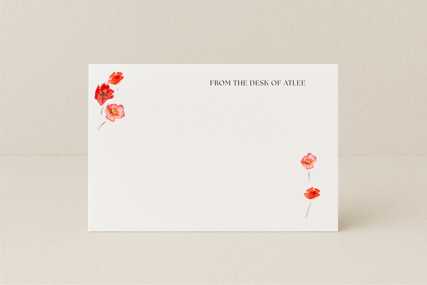 Bright scarlet blooms edge your page like a happy little parade. Perfect for sending joyful announcements, heartfelt thanks, or bright words of encouragement.