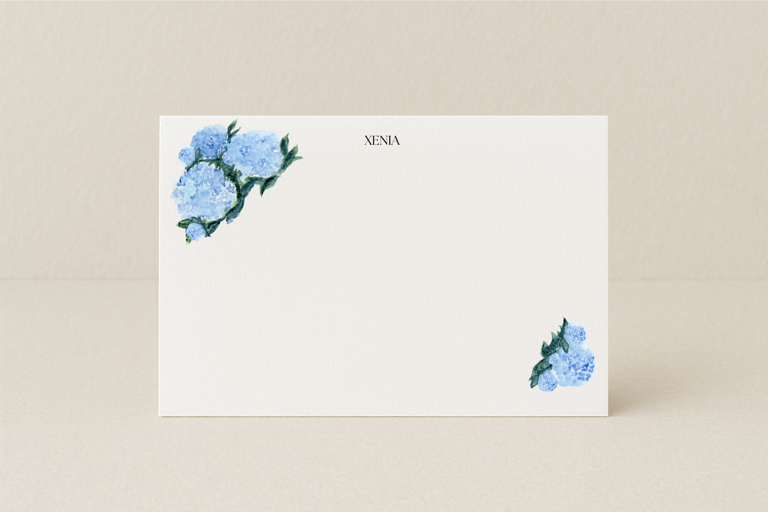 Cool clusters of hydrangeas bring a calm summer-morning feel. Lovely for wedding season notes, hospitality thank-yous, or catching up with an old friend.